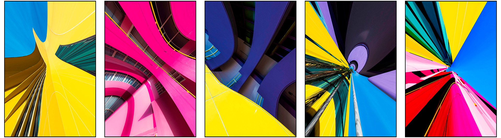 Avec la série Architectural Colors, il transforme Bangkok en un champ visuel vibrant, où les bâtiments se décomposent en éclats de couleurs, de lignes et de lumière. Par la saturation et la distorsion, il réinvente la ville en un univers psychédélique et instable, miroir de son énergie débordante. Son travail invite à voir l’architecture autrement : non plus comme un cadre figé, mais comme une matière vivante et mouvante, traversée d’émotions et de pulsations.