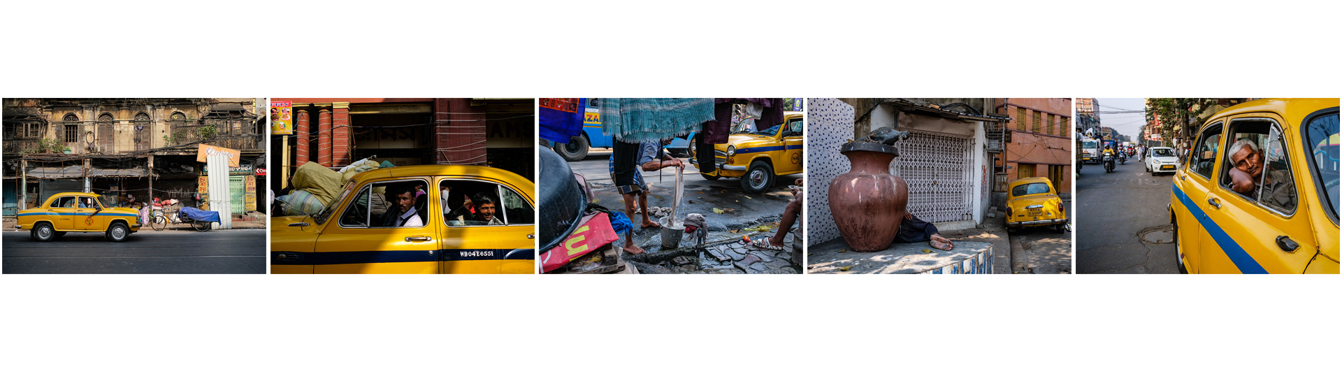 Avec sa série Le taxi jaune, elle documente la disparition progressive d’un symbole emblématique de Calcutta. Ces voitures, autrefois indissociables de l’identité de la ville, s’effacent face aux nouvelles formes de transport. Son travail interroge la mémoire collective et met en lumière la fragilité des repères culturels, invitant le spectateur à réfléchir à ce que les villes gagnent… et à ce qu’elles perdent.